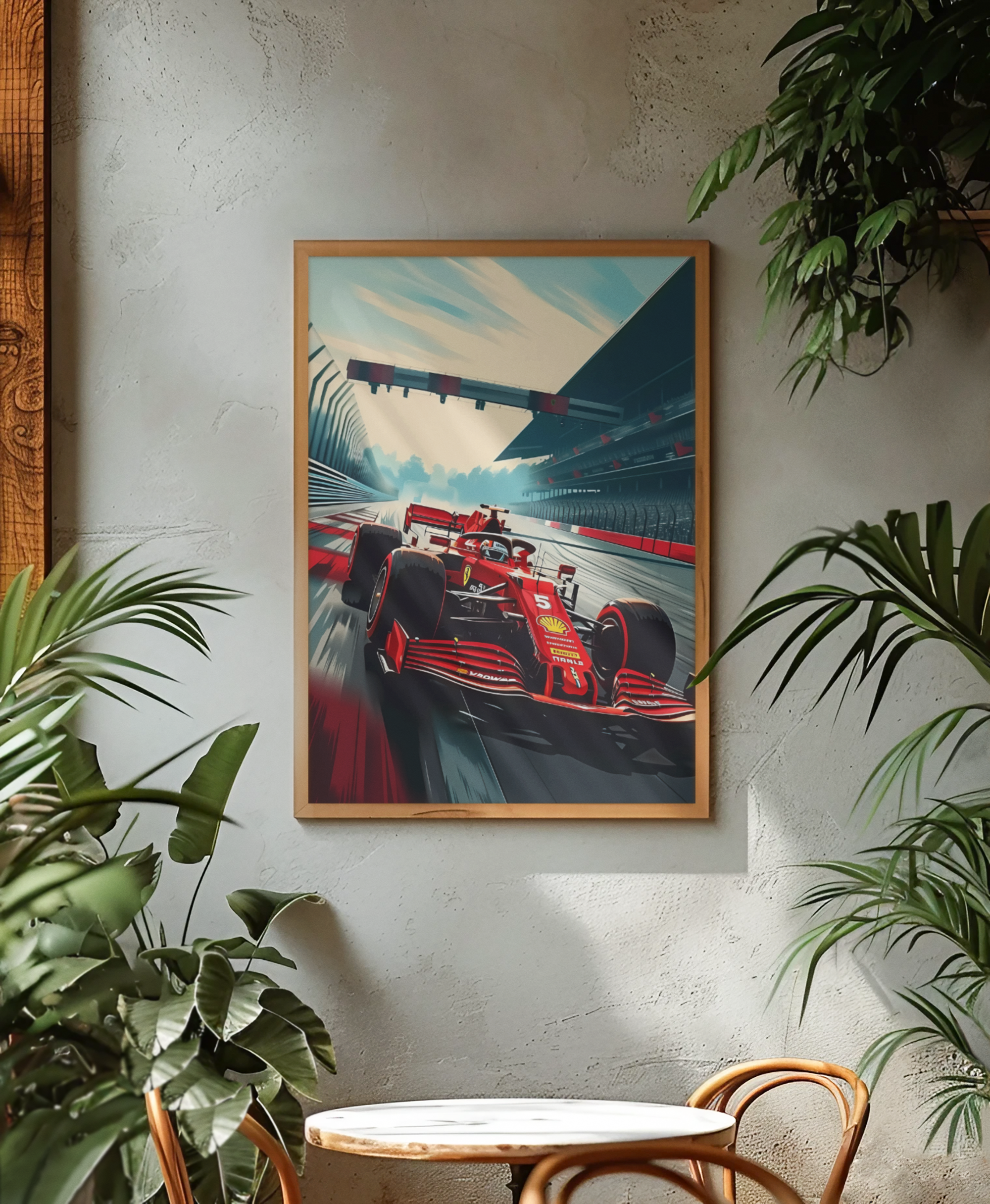 Yellow Ferrari S.P.A Italian Sports Car Poster