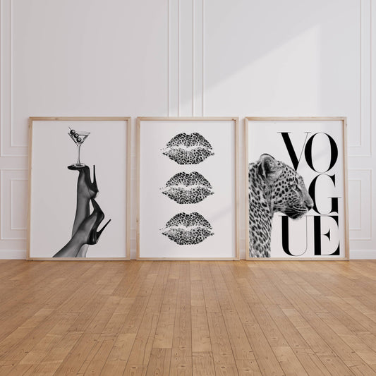 Set of 3 Luxury Trendy Prints Leopard Eclectic Wall Art