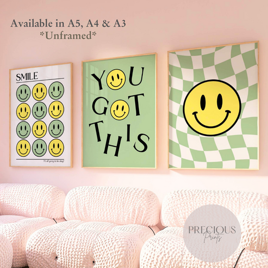 Set of 3 Green Smiley Preppy Prints Motivational Poster / Collage Preppy Poster