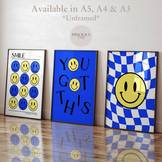 Set of 3 Blue Smiley Preppy Prints Motivational Poster / Collage Preppy Poster