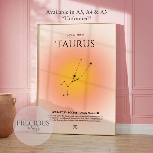 Taurus Zodiac Print / Preppy Trendy Wall Art Poster / A5 A4 A3 Unframed Pink