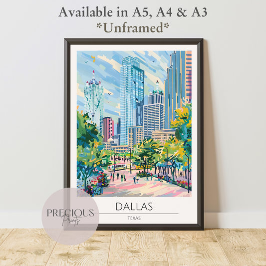 Texas, Dallas Travel Print Poster / Vintage Wall Art / A5 A4 A3 / Unframed