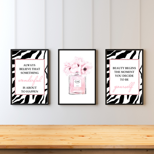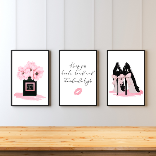 Teenage Bedroom Glam Wall Art Fashion Print Set of 3 Prints A5 A4 A3