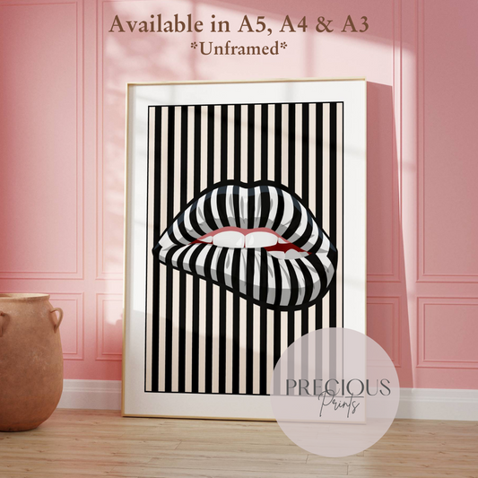 Stripy Lip Art Poster / Preppy Poster / Vintage Retro Poster / Trendy Print