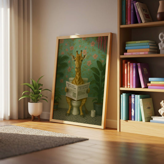 Giraffe on Toilet Print / Funny Art Poster / Humour / Pop Art / Trendy A5 A4 A3