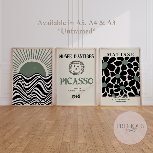 Set of 3 Bauhaus Matisse Picasso Prints A5 A4 A3 Art Exhibition Sage Green