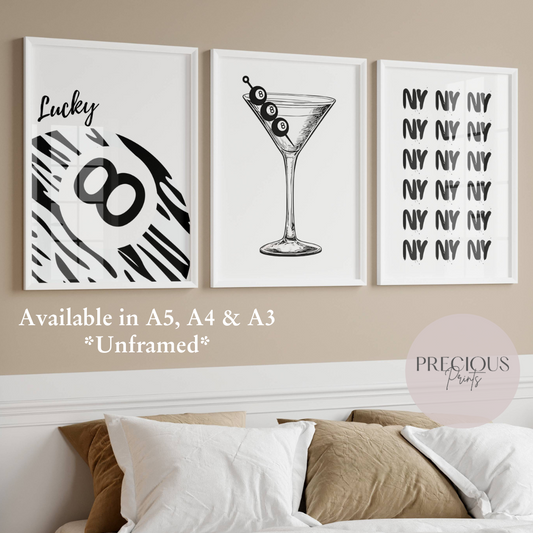 Set of 3 Stylish Black and White Lucky 8 Ball Zebra Wall Art