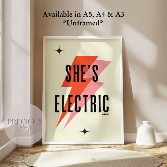 Oasis Lyric Print Music Poster / She's Electric / Wall Art A5 A4 A3 Unframed