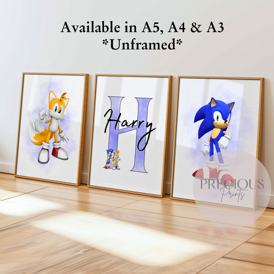 Set of 3 Childrens Personalised Sonic and Tails Bedroom Print / A5 A4 A3