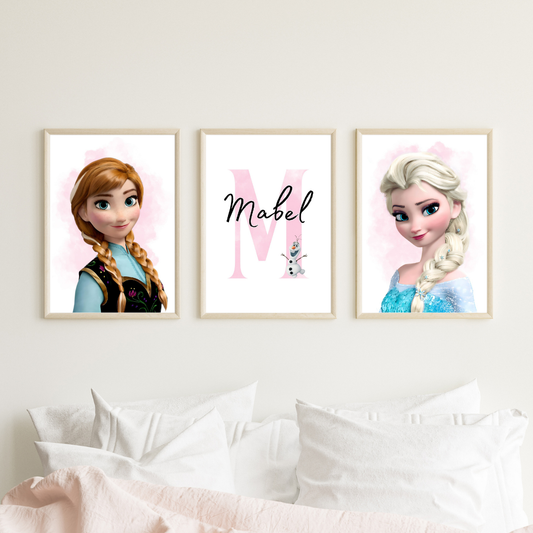 Set of 3 Personalised bedroom Print / Elsa & Anna Frozen A5 A4 A3 Unframed