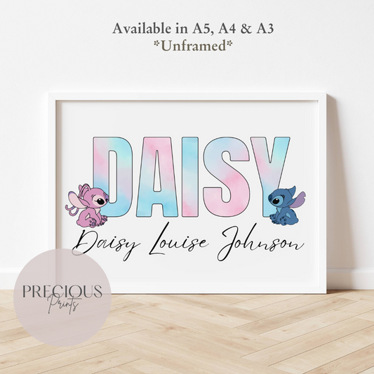 Personalised Angel Stitch Child bedroom Nursery Print