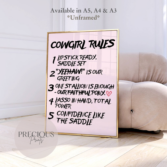 Preppy Cowgirl Rules Poster / Trendy Wall Art / Pink Girly Art print / A5 A4 A3