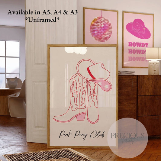 Cowgirl Preppy Poster / Trendy Wall Art / Pink Girly Art print / A5 A4 A3
