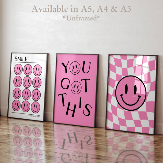 Set of 3 Pink Smiley Preppy Prints Motivational Poster / Collage Preppy Poster