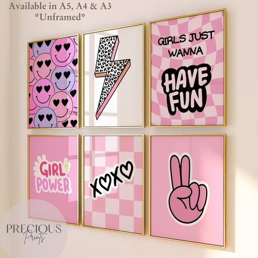 Set of 3 Pink Preppy Prints / Tween Children's Poster / Trendy Wall Art / Unframed