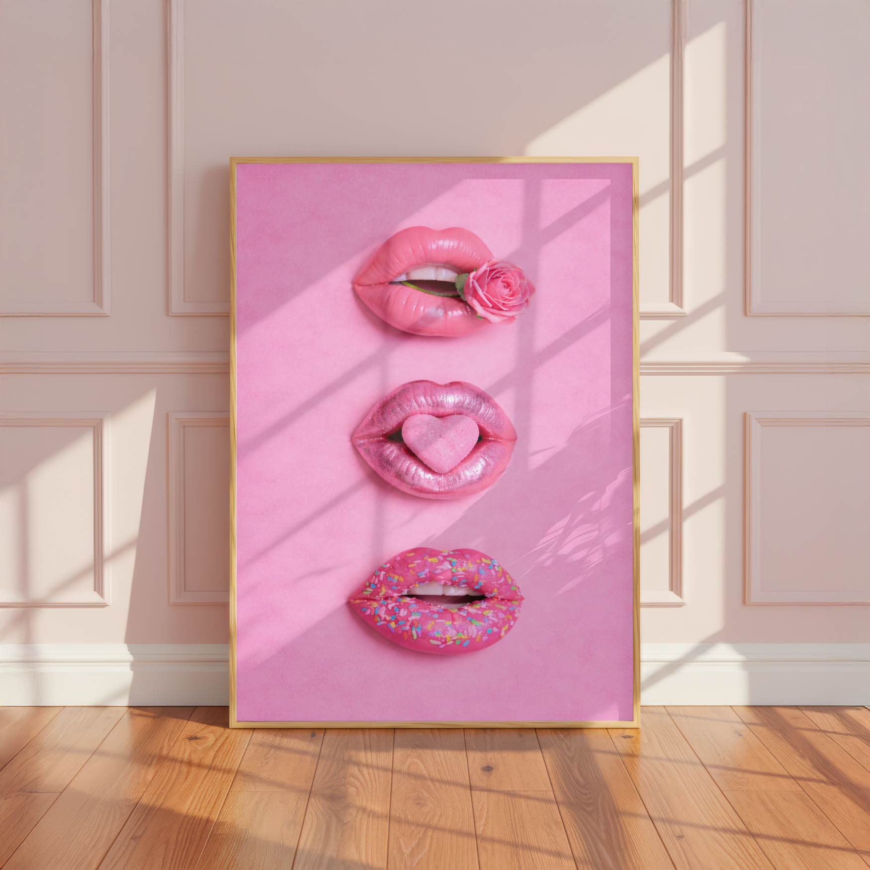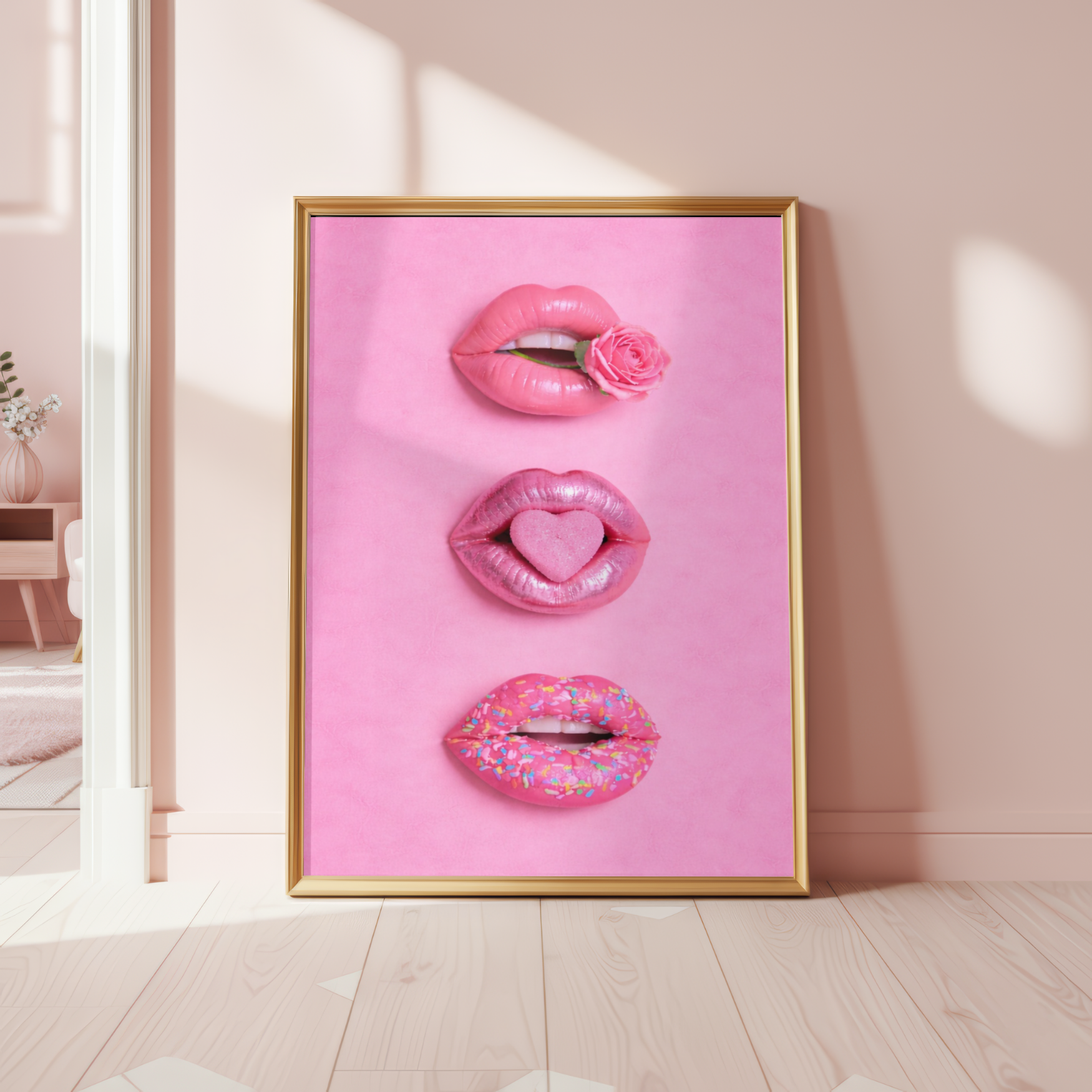 Pucker up for pure pop art perfection! This vibrant Pink Candy Lips Print features three dimensional lips in every shade of pink imaginable—from soft blush to bold magenta. With its preppy, playful aesthetic, this trendy artwork brings instant charm and personality to any space. Available in A5, A4, and A3 sizes, it's the perfect statement piece for gallery walls, bedrooms, or creative studios. Unframed and ready to style your way, this cute design celebrates all things pink with contemporary flair that's impossible to resist.