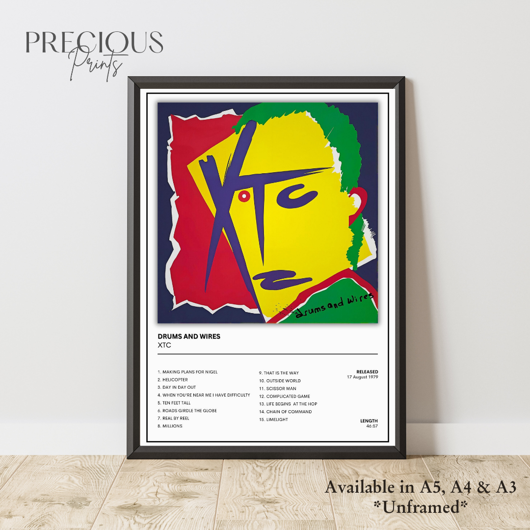 Celebrate the iconic sound of XTC with this high-gloss "Drums and Wires" album poster. Available in A5, A4, and A3 sizes, it offers vibrant detail and sharp contrast to brighten any space. Perfect for fans wanting a stylish, unframed piece to personalize their walls with a classic musical touch.